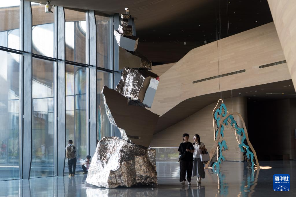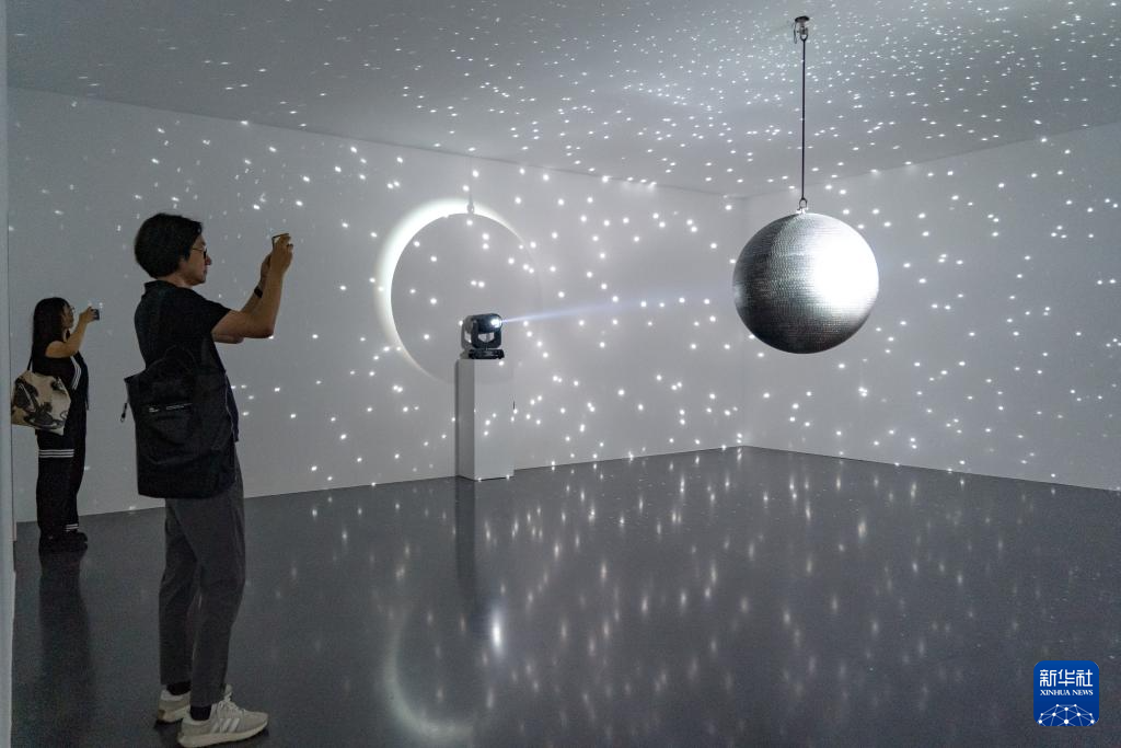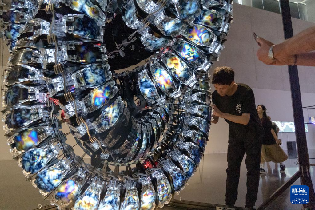 7月16日,在成都市美术馆,观众体验、拍摄展品。