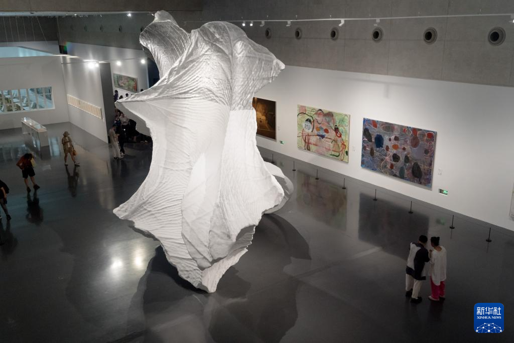这是7月16日在成都市美术馆拍摄的双年展展厅。