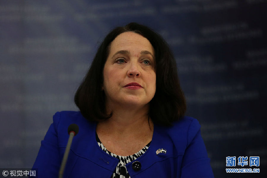 當(dāng)?shù)貢r(shí)間2018年1月8日,薩爾瓦多圣薩爾瓦多,美國駐薩爾瓦多大使Jean Manes出席新聞發(fā)布會(huì)。(圖片來源:視覺中國)