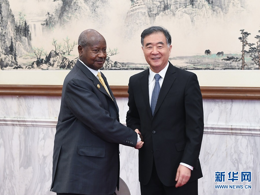 9月6日,全國政協(xié)主席汪洋在北京釣魚臺國賓館會見烏干達總統(tǒng)穆塞韋尼?!⌒氯A社記者 申宏 攝